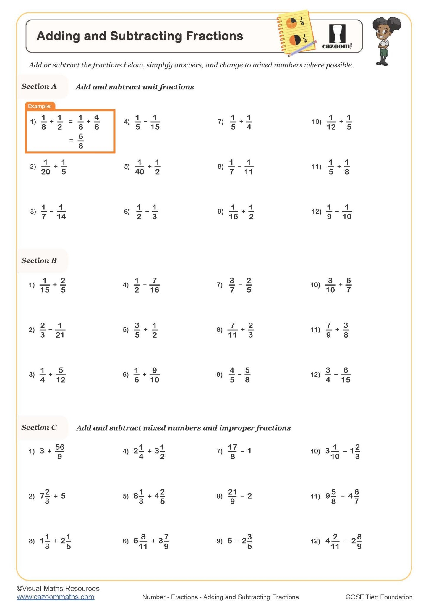 Addition And Subtraction Of Fractions Worksheets