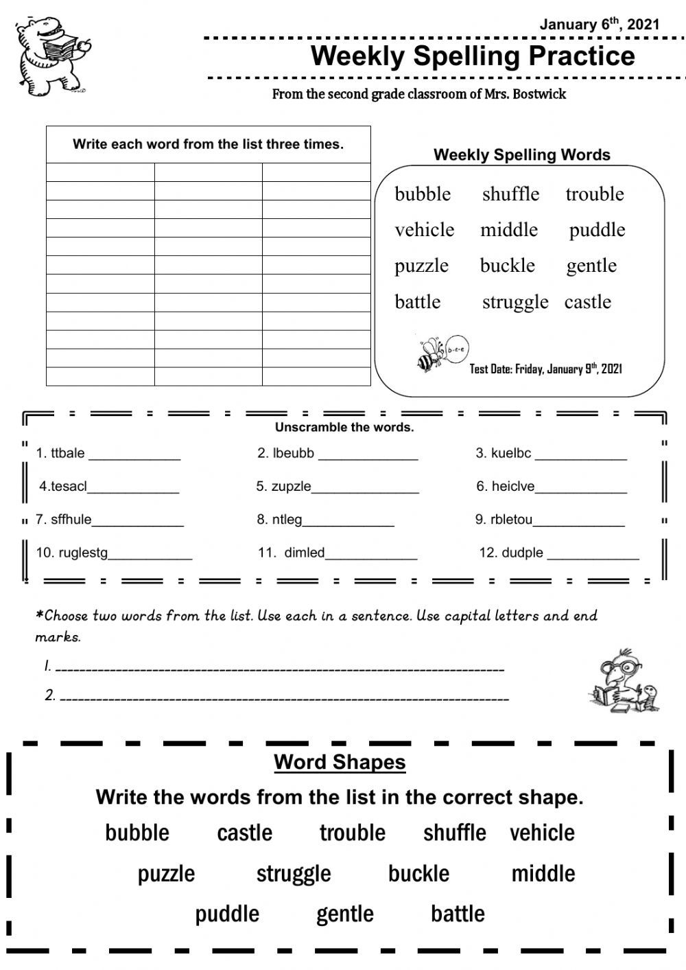 Spelling Practice With Consonant le WordsSpelling Practice With Consonant Le Words
