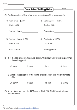 Percentage Profit And Loss Worksheets Pdf