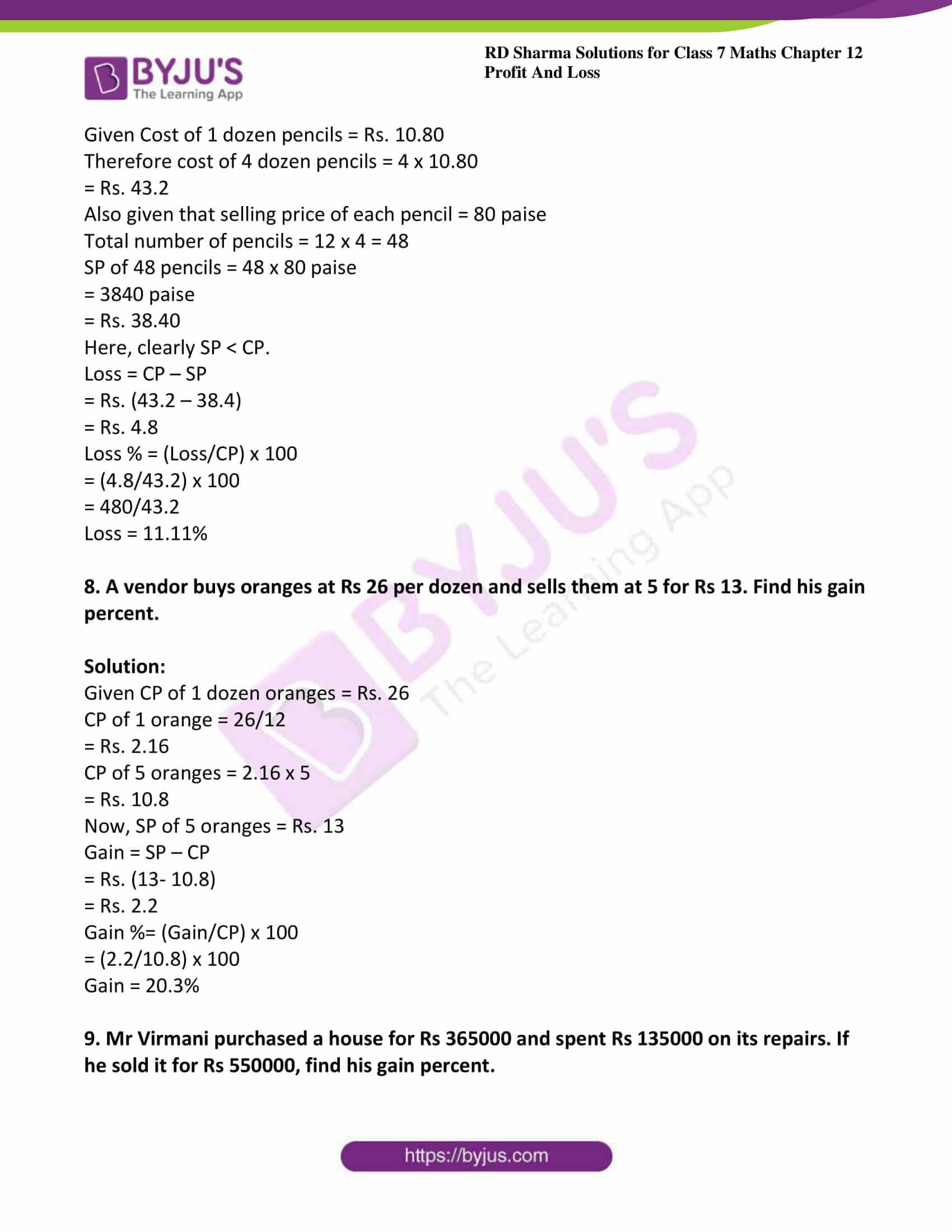 RD Sharma Solutions For Class 7 Maths Chapter 12 Profit And Loss